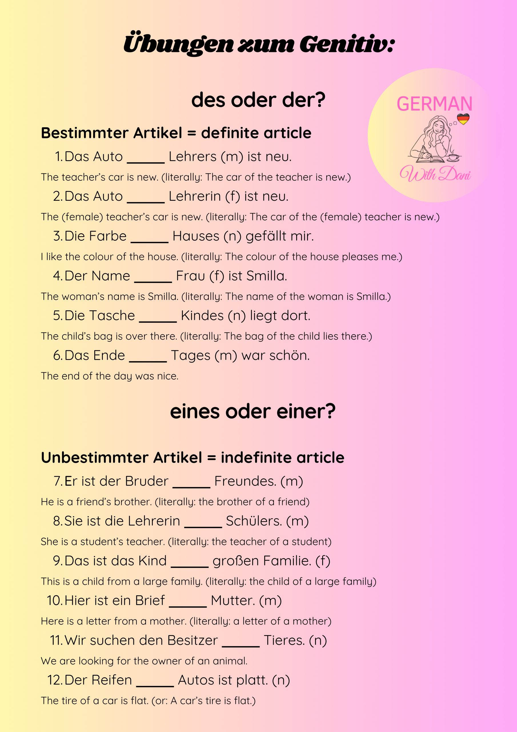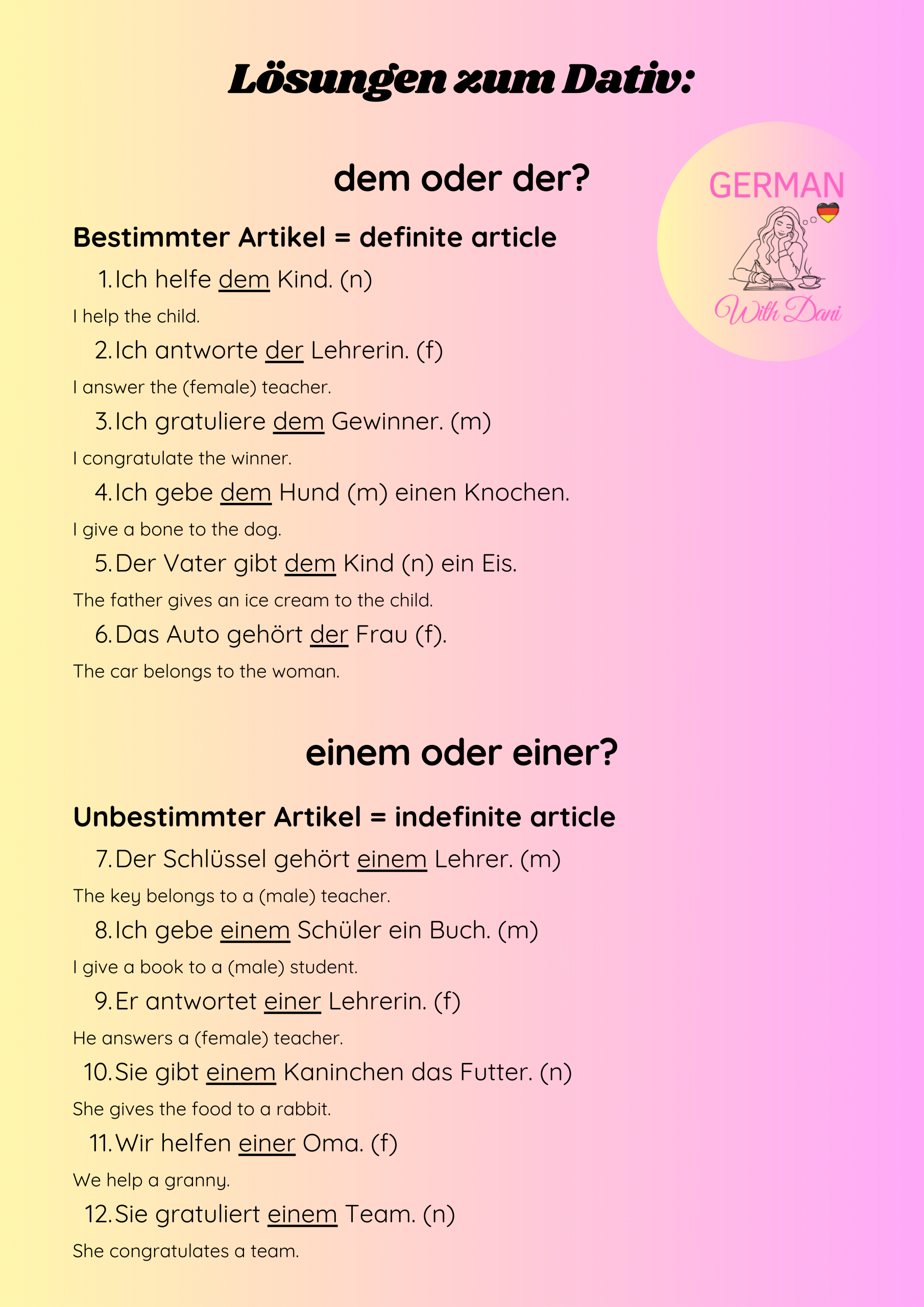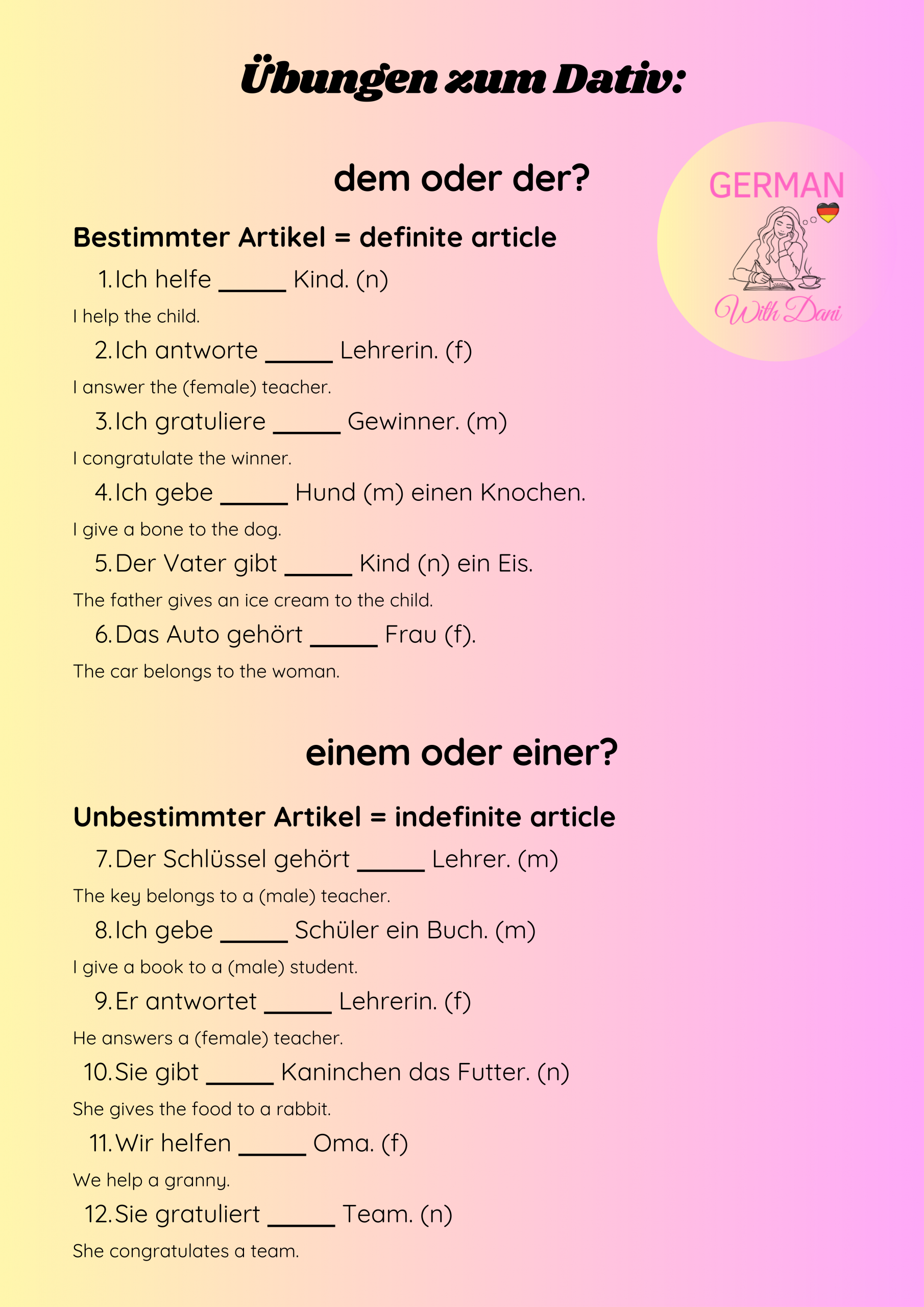 Master the four cases in German. Here you find the explanation, exercises and keys. Viel Erfolg! (= You’ve got this!)